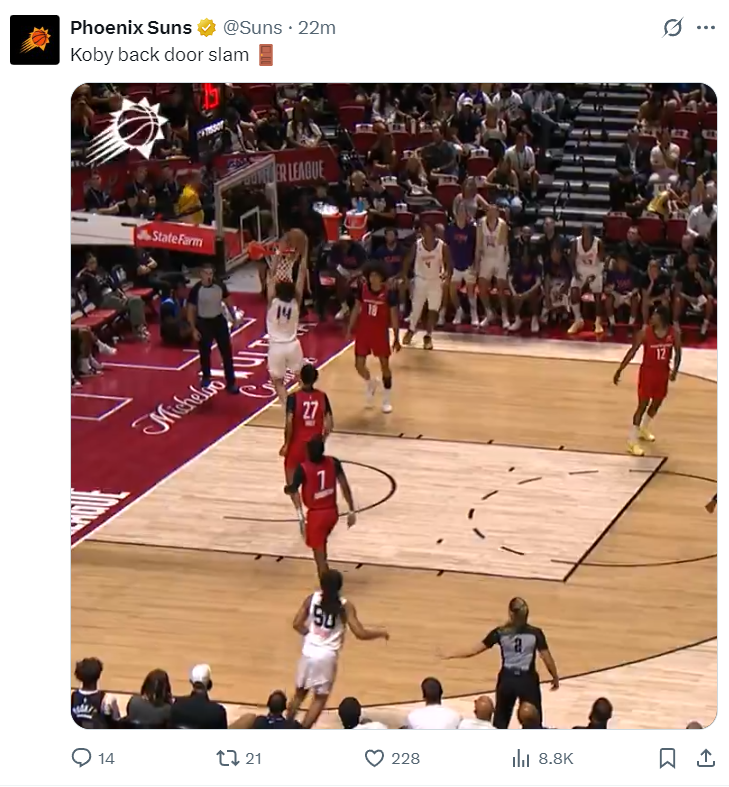 北京时间7月12日,NBA夏季联赛,菲尼克斯太阳以103-84击败华盛顿奇才。这场比赛太阳的10号秀马鲁阿奇、41号秀科比-布雷亚出战,奇才的六号秀特雷-约翰逊、去年榜眼萨尔、去年14号秀卡林顿等有出战,没想到最终技压群雄的是今年41号秀布雷亚。