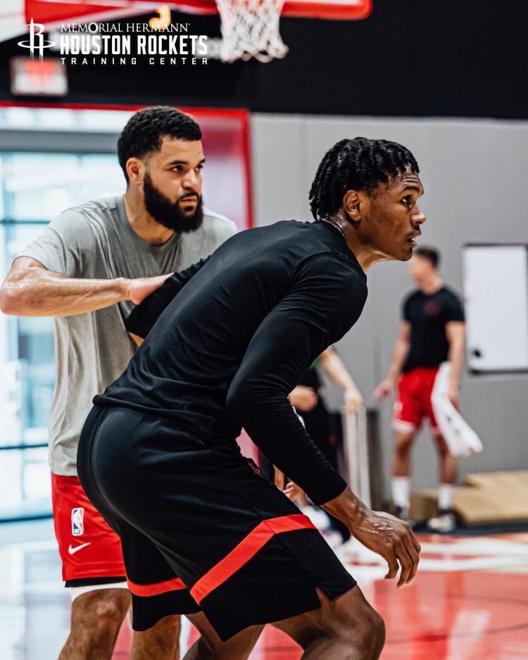 直播吧9月4日讯 今天,火箭官方更新社媒晒出了球员训练照,范弗里特、阿门、谢泼德在列。